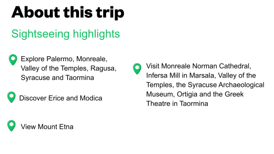 Your journey through Sicily has come to an end. All that’s left is to say a fond farewell to new friends and take your airport transfer for your return journey home. Meals: Breakfast