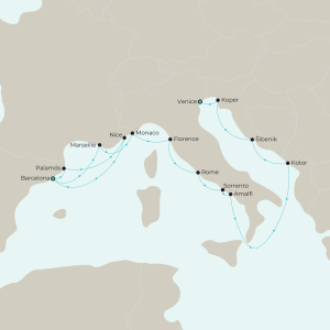 - Overnights in port in Nice, Barcelona and Mestre