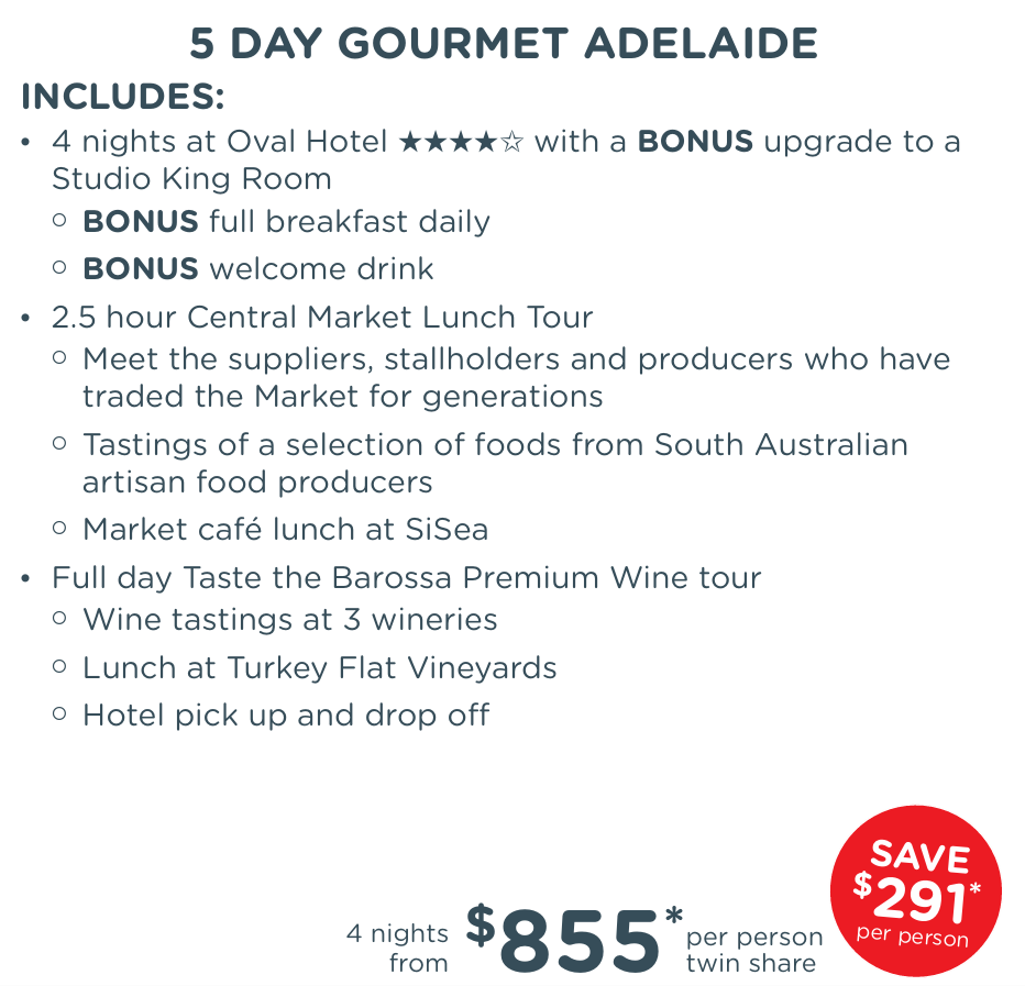 | 5 Day Gourmet Adelaide | AU$855* |