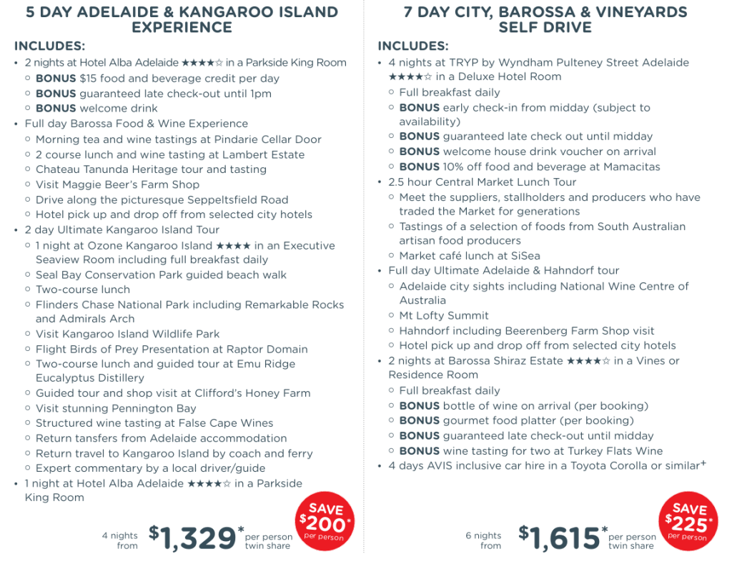 | 5 Day Adelaide & Kangaroo Island Experience | AU$1,329* |