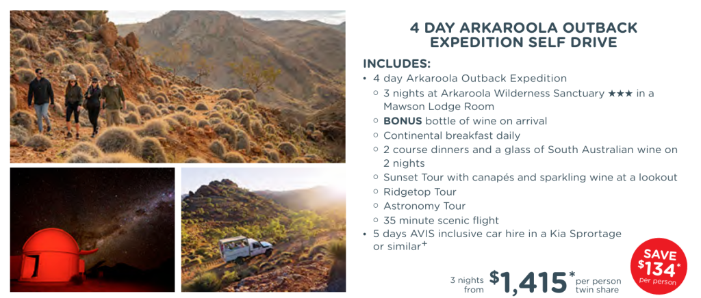 | 4 Day Arkaroola Outback Expedition Self Drive | AU$1,415* |