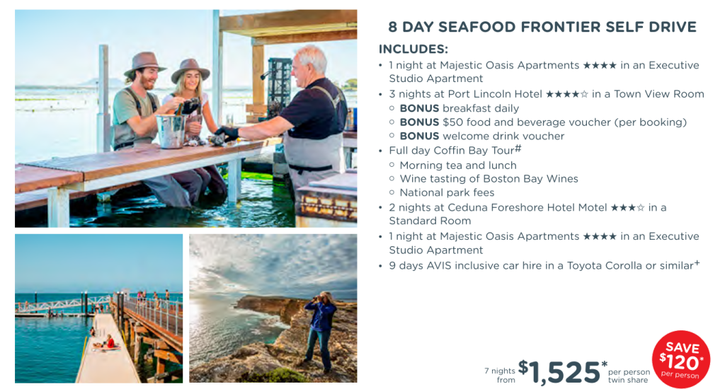 | 8 Day Seaf0od Frontier Self Drive | AU$1,525* |