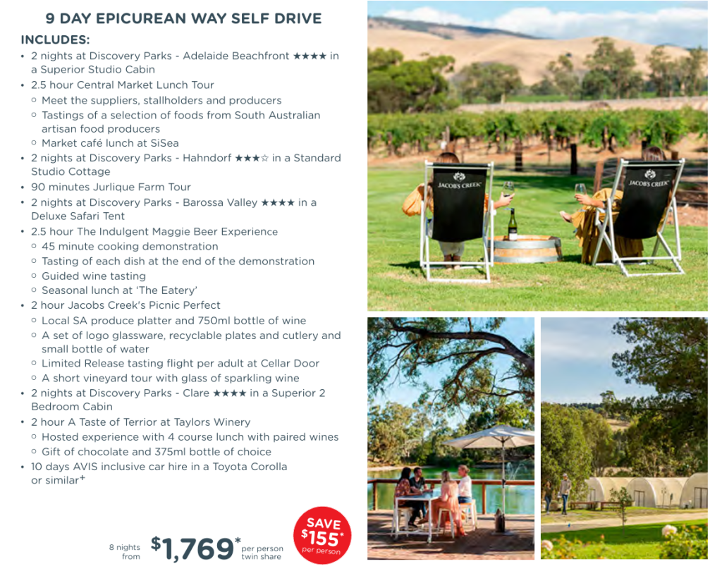 | 9 Day Epicurean Way Self Drive | AU$1,769* |