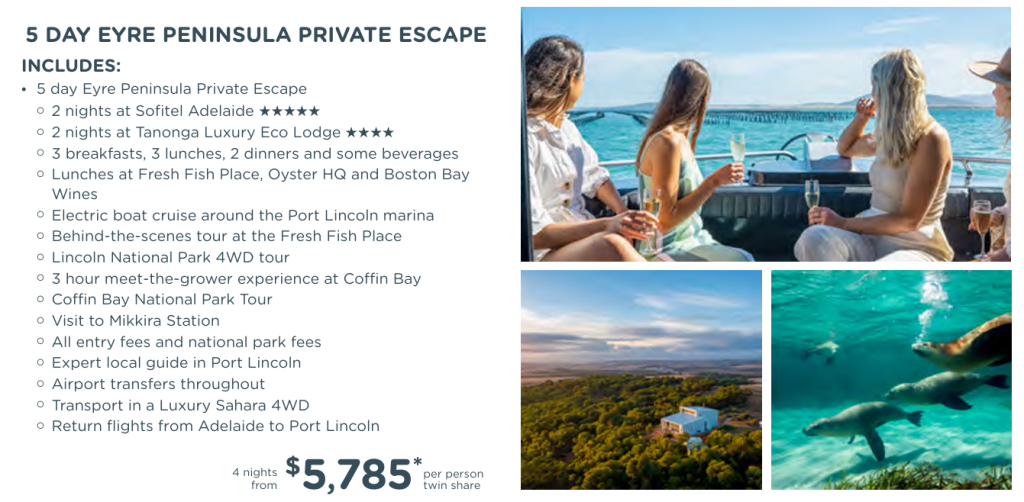 | 5 Day Eyre Peninsula Private Escape | AU$5,785* |