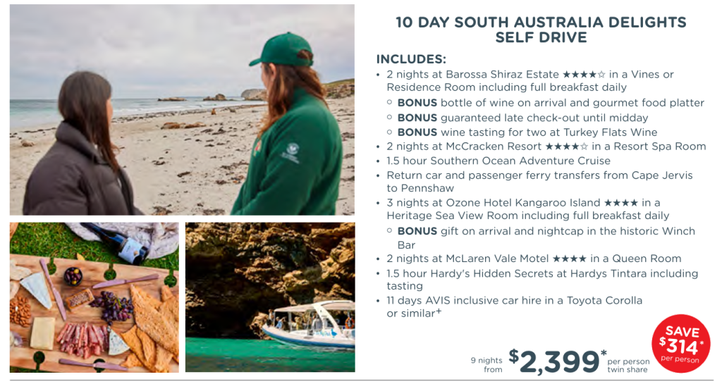 | 10 Day South Australia Delights Self Drive | AU$2,399* |
