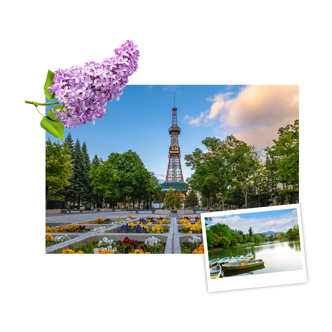 Hokkaido’s mild spring awakens with early sakura and wildflowers, blending chill and charm. Position yourself at Wyndham Garden Sapporo Odori (Associate Resort).