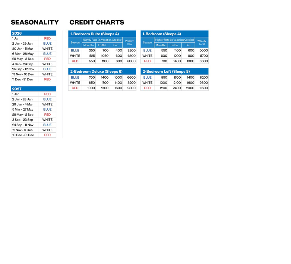 - Ground floor justification requests are accepted based on physical or medical needs. Please call the Vacation Planning Center for details.