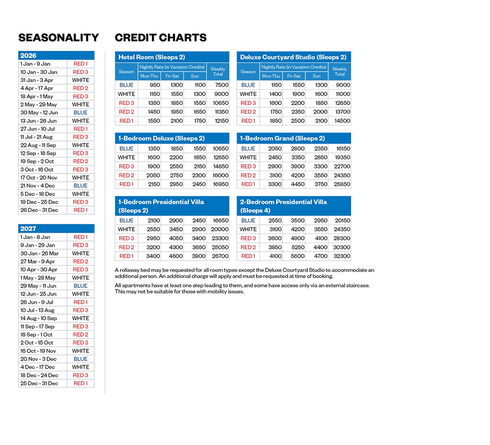 - Rollaway Beds: A rollaway bed can be requested for all room types, except for Deluxe Courtyard Studio as this will restrict space in the apartment. Must be requested at time of booking. Cost is approx. IRD 300,000 net per day, payable directly to the Resort.