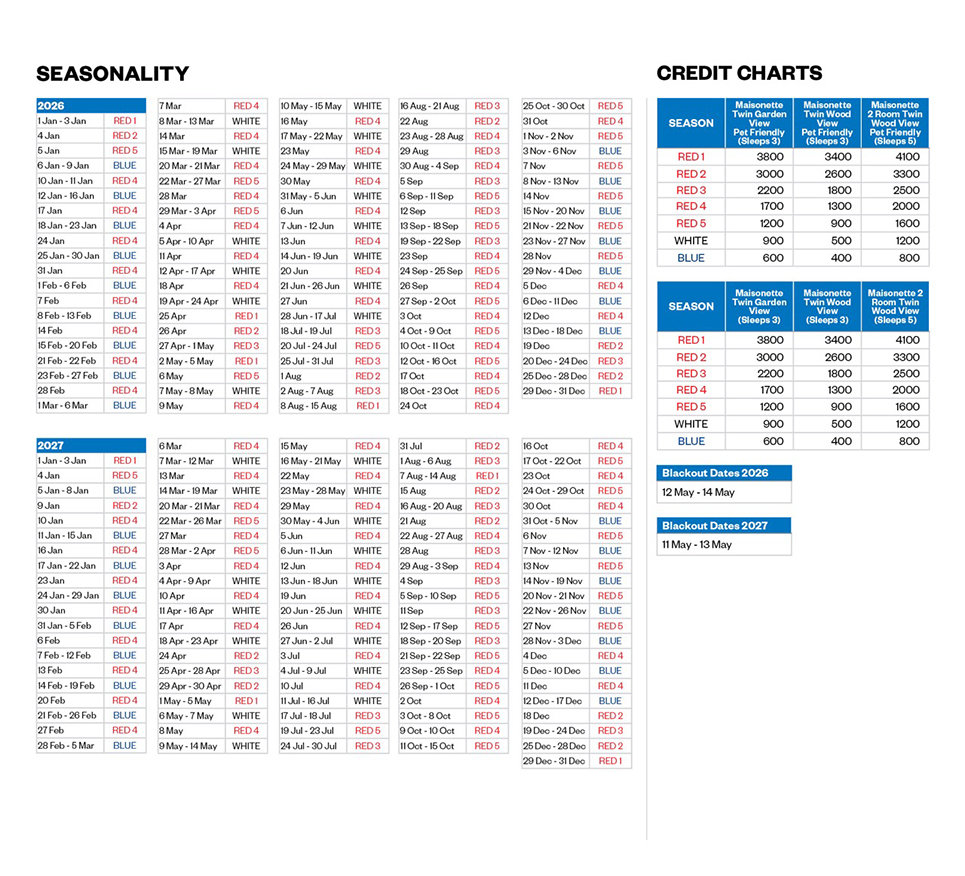 - All other room types not marked with the above symbols are request only. Please fill out this Booking Form and an Owner Services consultant will be in touch with you.
