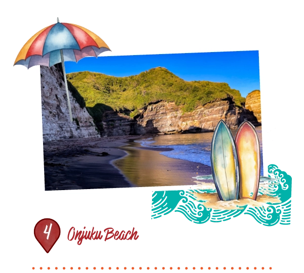 The beach is a stunning, two-kilometre stretch of white sand on the east coast of Chiba’s Boso Peninsula, renowned as one of Japan’s best surfing spots. Located just 90 minutes from Tokyo by train, its clean waters and consistent waves attract both swimmers and surfers of all skill levels. The beach features amenities like showers and nearby surf rentals.