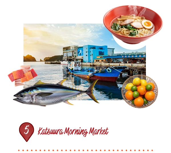 It is one of Japan’s three great morning markets, with a history spanning over 430 years. Held daily except Wednesdays, it features lively stalls where locals and visitors buy fresh seafood, seasonal vegetables, and local specialties like Katsuura Tantan-men (spicy ramen). Interacting with the friendly vendors is a key part of the authentic, historic experience.