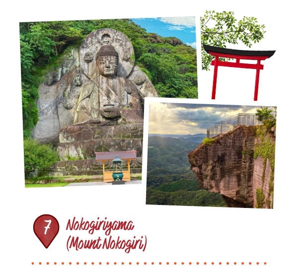 It is a spectacular coastal mountain known for its jagged, “saw-toothed” silhouette. A ropeway or hiking trail leads to its summit, where the terrifying Jigoku Nozoki (Hell Lookout) offers breathtaking views from a precipice. The mountain houses the vast Nihon-ji Temple complex, featuring one of Japan’s largest stone-carved Buddhas and thousands of smaller statues.